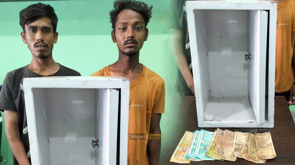 इसके बाद सोमवार को चोरी की घटना सामने आते ही भक्ति नगर थाने में मंदिर प्रबंधन की तरफ से लिखित शिकायत दर्ज कराया गया था। शिकायत दर्ज होने के बाद पुलिस ने तहकीकात शुरू किया। इस दौरान बीती रात मंदिर में चोरी के आरोप में दो बदमाशों को गिरफ्तार किया। पूछताछ के बाद बदमाशों के पास से मंदिर से चोरी हुए दान बॉक्स और रुपये भी बरामद कर लिया। आज दोनों बदमाशों को चोरी के आरोप में मामला दर्ज कर जलपाईगुड़ी अदालत में पेश किया गया है।