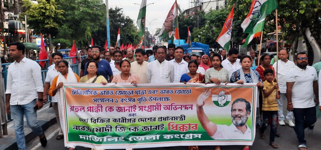 सिलीगुड़ी,7 सितंबर (नि.सं.)। दार्जिलिंग जिला कांग्रेस ने भारत जोड़ो यात्रा की वर्षगांठ के अवसर पर सिलीगुड़ी में एक रैली निकाली है।