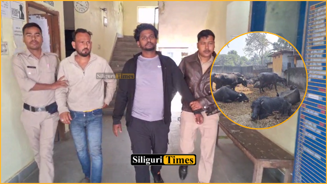 पुलिस के अनुसार, खोरीबाड़ी के थानझोड़ा चाय बागान इलाके से 10 भैंसों के साथ दो पिकअप वैन जब्त की गई है। गिरफ्तार आरोपियों की पहचान मोहम्मद अफजल और नजरुल अंसारी के रूप में हुई है। दोनों नक्सलबाड़ी क्षेत्र के निवासी बताए जा रहे है।
