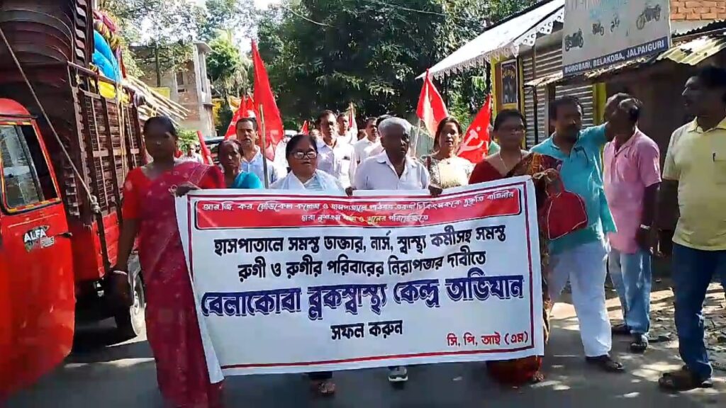 बताया गया है कि सीपीएम की जलपाईगुड़ी सदर पश्चिम एरिया कमिटी ने छह सूत्री मांगों के समर्थन में जलपाईगुड़ी सदर ब्लॉक के बेलाकोवा ग्रामीण अस्पताल में एक ज्ञापन सौंपा। आज उन्होंने बेलाकोवा ग्राम पंचायत कार्यालय संलग्न इलाके से रैली निकालकर बेलाकोवा ग्रामीण अस्पताल के ब्लॉक स्वास्थ्य अधिकारी को उक्त ज्ञापन सौंपा। इस संबंध में तपन गांगुली ने कहा कि आज हमने छह सूत्री मांगों को लेकर बेलाकोवा ग्रामीण अस्पताल के ब्लॉक स्वास्थ्य अधिकारी को एक ज्ञापन सौंपा है।