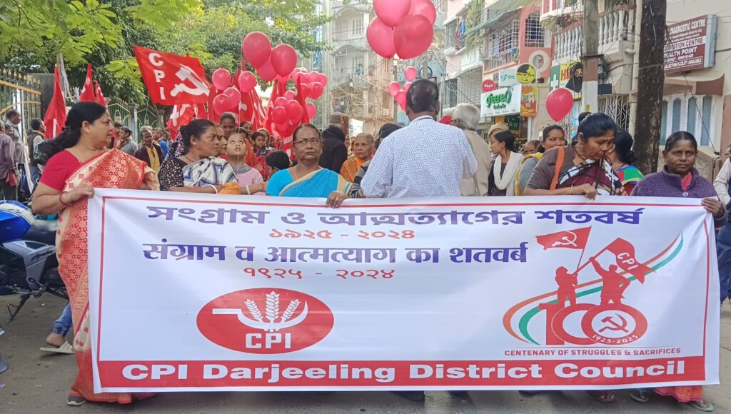 सिलीगुड़ी, 26 दिसंबर(नि.सं.)। भारतीय कम्युनिस्ट पार्टी ने शताब्दी वर्ष में प्रवेश किया है। इस अवसर पर भारतीय कम्युनिस्ट पार्टी दार्जिलिंग जिला परिषद ने सिलीगुड़ी के बाघाजतिन पार्क से एक रैली निकाली है। भारतीय कम्युनिस्ट पार्टी दार्जिलिंग जिला परिषद ने गुरुवार को हाथ में गुब्बारे और पार्टी के झंडे लेकर शहर के विभिन्न इलाकों की परिक्रमा की। इस शताब्दी वर्ष के उपलक्ष्य में पूरे वर्ष विभिन्न कार्यक्रम आयोजित किए जाएगे। पार्टी कार्यकर्ताओं ने कहा कि यह रैली उसी का हिस्सा है। इस रैली में सैकड़ों लोग शामिल हुए।