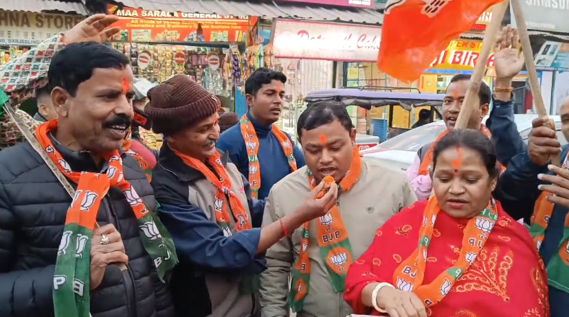 नक्सलबाड़ी, 8 फरवरी (नि.सं.)। दिल्ली में भाजपा ने ऐतिहासिक जीत हासिल की है। नक्सलबाड़ी में भाजपा की जीत की खुशी में कार्यकर्ताओं ने आतिशबाजी की और एक-दूसरे को मिठाई खिलाकर बधाईयां दीं। भाजपा मंडल के सदस्यों ने नक्सलबाड़ी में एक जुलूस निकाली।