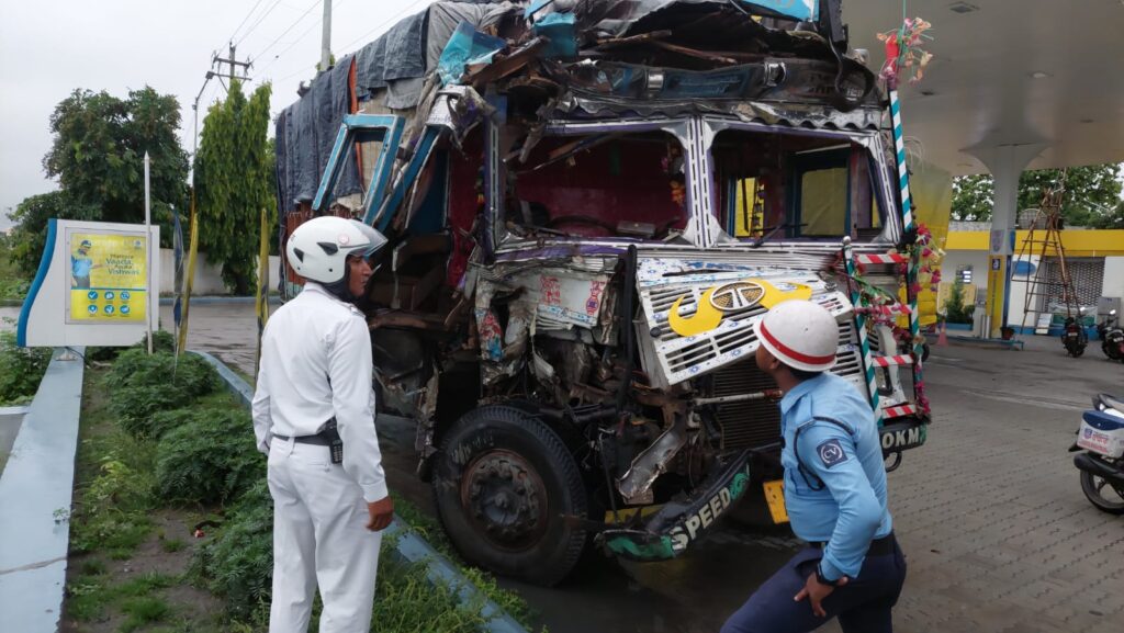 बताया गया है कि देर रात को एक ट्रक सिलीगुड़ी से जलपाईगुड़ी की ओर जा रहा था। तभी फूलबाड़ी के जियागंज इलाके में विपरीत दिशा से आ रहे दूसरे ट्रक के साथ उक्त ट्रक की आमने-सामने की टक्कर हो गई। जिसके चलते दोनों ट्रकों के आगे का हिस्सा का कचूमर निकल गया।