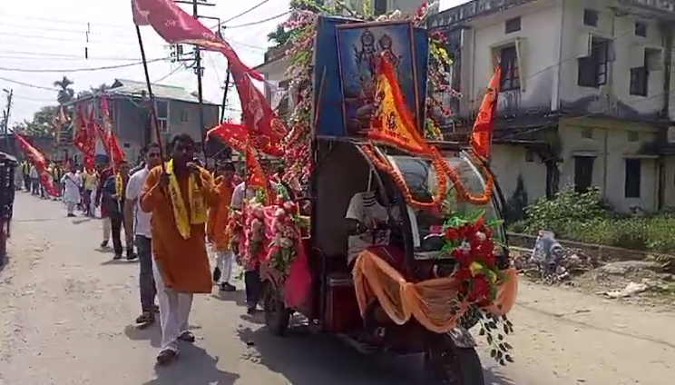 अलीपुरद्वार, 23 अप्रैल (नि.सं.)। हनुमान जयंती के अवसर पर अलीपुरद्वार के मारवाड़ी ठाकुरबाड़ी की ओर से एक रंगारंग शोभायात्रा निकाली गई। आज अलीपुरद्वार चौपथी स्थित मारवाड़ी ठाकुरबाड़ी से उक्त रंगारंग शोभायात्रा निकाली गई जो बाटामोड़, स्टेशनपाड़ा, बाबूपाड़ा समेत विभिन्न इलाकों की परिक्रमा करते हुए पुनः मारवाड़ी ठाकुरबाड़ी में आकर संपन्न हुई। इस शोभायात्रा में लोगों की भीड़ देखी गई।