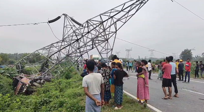 घटना के कारण राष्ट्रीय राजमार्ग पर यातायात पूरी तरह से बंद हो गया। बाद में बिजली विभाग के कर्मियों ने स्थिति को सामान्य किया। पुलिस ने पूरे मामले की जांच कर रही है।
