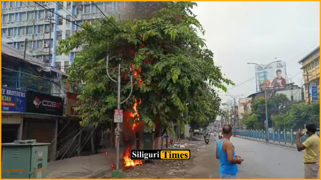 सिलीगुड़ी, 27 जून (नि.सं.)। आज सुबह हिलकार्ट रोड पर बिजली के खंभे में आग लगने से इलाके में अफरा-तफरी मच गई। आग को देखकर आसपास के लोगों ने तुरंत दमकल विभाग को सूचना दी। घटना की खबर मिलते ही दमकल की एक गाड़ी और सिलीगुड़ी थाना पुलिस मौके पर पहुंची। दमकल विभाग की मशक्कत से कुछ ही देर में आग पर पूरी तरह काबू पा लिया गया।