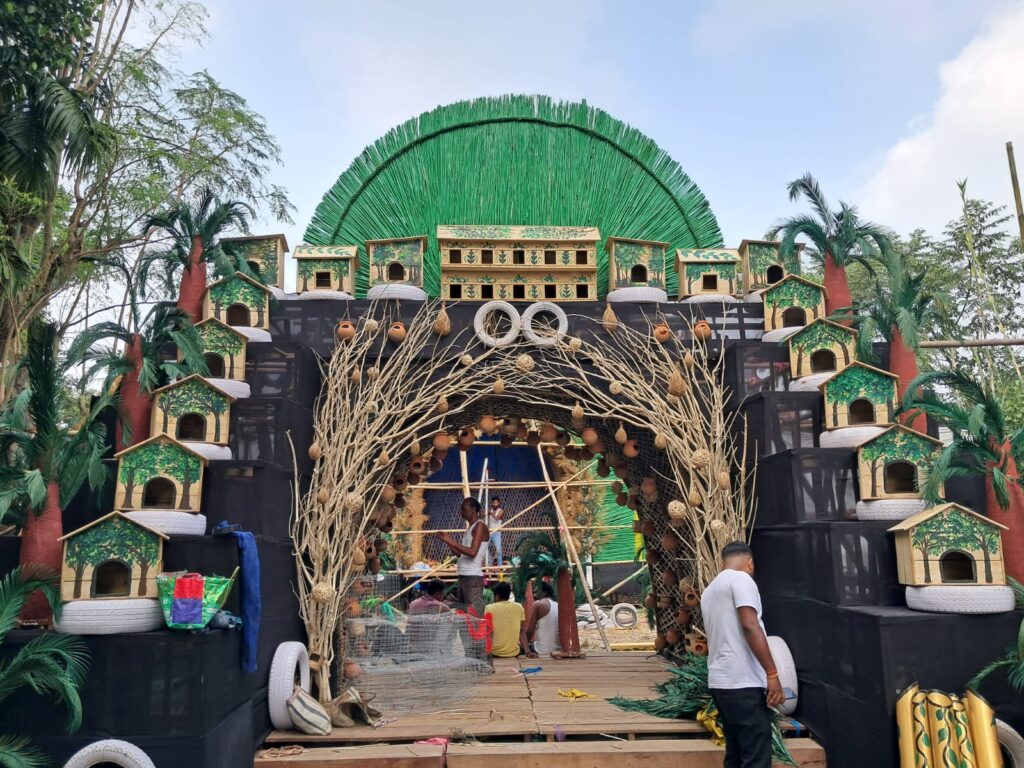 इस वर्ष उनकी पूजा स्वर्ण जयंती वर्ष में प्रवेश कर रही है। इस वर्ष उनके 50वें वर्ष में थीम ‘पाखीर देशे मां’है। पूजा की अंतिम तैयारी चल रही। पूजा मंडप जूट,काशफुल, बांस, पुआल समेत विभिन्न सामग्रियों से बनाया जा रहा है।