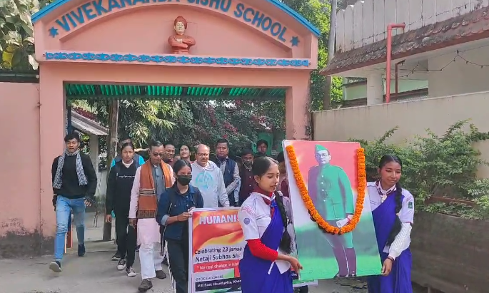 खोरीबाड़ी, 23 जनवरी (नि.सं.)। खोरीबाड़ी ह्यूमनिज्म वेलफेयर एसोसिएशन की ओर से नेताजी सुभाष चंद्र बोस की जयंती मनाई गई है। आज खोरीबाड़ी स्थित विवेकानंद शिशु विद्यालय में सांस्कृतिक कार्यक्रम का आयोजन किया गया। साथ ही एक शोभायात्रा भी निकाली गई।