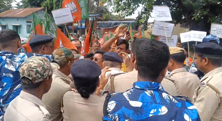 खोरीबाड़ी थाने में भी भाजपा के विरोध प्रदर्शन कार्यक्रम को लेकर तनाव का माहौल देखा गया। आज भाजपा कार्यकर्ता और समर्थक खोरीबाड़ी थाने पहुंचे। इसके बाद पुलिस ने प्रदर्शनकारियों को थाने में घुसने से पहले ही बैरिकेड लगाकर रोक दिया। इस दौरान पुलिस के साथ प्रदर्शनकारियों की हाथापाई हो गई। उन्होंने बैरिकेड तोड़कर अंदर घुसने की कोशिश की। घटना को लेकर व्यापक तनाव का माहौल देखा गया।