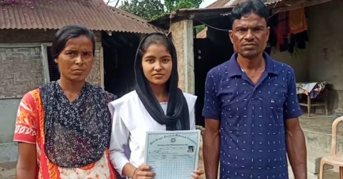 राजगंज,21 मई (नि.सं.)। चाय श्रमिक की बेटी अजमीरा परवीन को मदरसा बोर्ड माध्यमिक परीक्षा में अच्छा परिणाम आया है। उसने 800 में 661 अंक हासिल किए हैं। वह भविष्य में नर्स बनकर गरीबों की सेवा करना चाहती है। अजमीरा परवीन राजगंज के सुखानी भोलापाड़ा हाई मदरसा की छात्रा है।