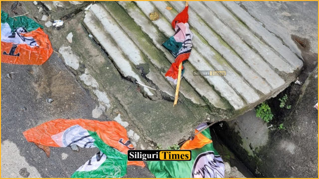 सिलीगुड़ी, 20 मार्च (नि.सं.)। सिलीगुड़ी के रथखोला मैदान इलाके में देर रात तृणमूल कांग्रेस के पार्टी झंडे फाड़े जाने का आरोप सामने आया है। गुरुवार देर रात की यह पूरी घटना पास लगे सीसीटीवी कैमरे में कैद हुई है।स्थानीय सूत्रों के अनुसार, रथखोला मैदान के आसपास विभिन्न स्थानों पर तृणमूल के झंडे लगाए गए थे। आरोप है कि सुनियोजित तरीके से उन झंडों को खोलकर या फाड़ दिया गया। तृणमूल का दावा है कि उसी इलाके में राम नवमी के अवसर पर लगाए गए भगवा झंडे सुरक्षित है, जबकि सिर्फ उनके पार्टी झंडों को निशाना बनाया गया है। घटना को लेकर तृणमूल नेतृत्व ने सीसीटीवी फुटेज इकट्ठा कर थाने में लिखित शिकायत दर्ज कराने की बात कही है।