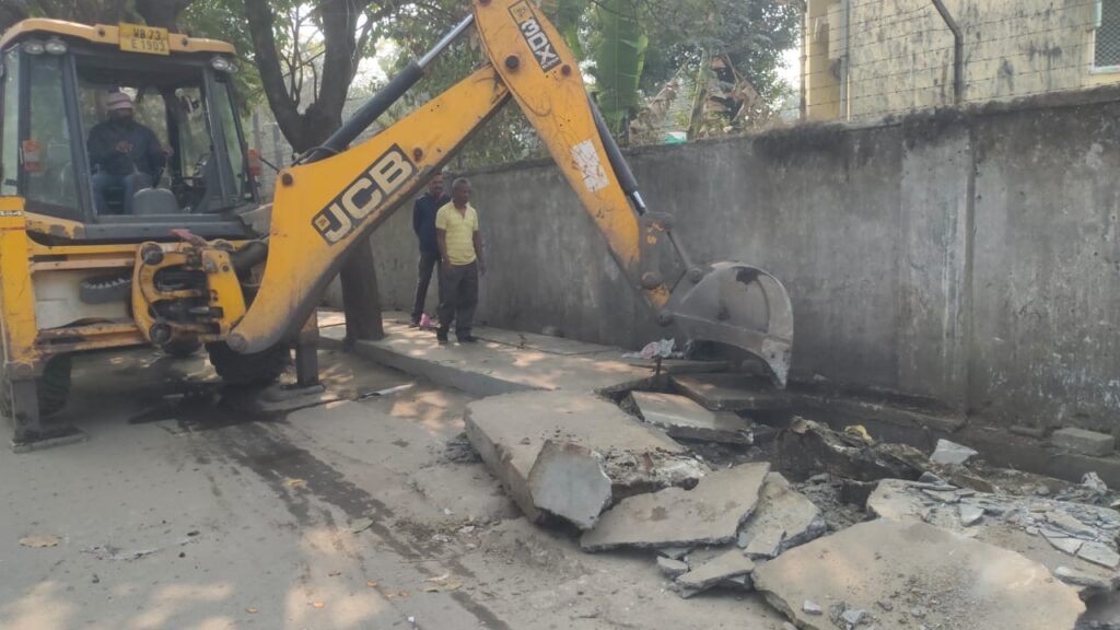 सिलीगुड़ी,22 जनवरी (नि.सं.)। चंपासारी निवेदिता मार्केट में निगम ने आज एक बार फिर अतिक्रमण के खिलाफ अभियान चलाया।बताया गया है कि चंपासारी निवेदिता सब्जी मार्केट में हाईड्रेन को कब्जा करके उसके ऊपर कंक्रीट का स्लैप देकर दुकानें फिर से शुरू कर दी गई थी। इसकी खबर मिलते ही आज सुबह नगर निगम ने भारी संख्या में पुलिस बल को साथ लेकर चंपासारी निवेदिता मार्केट में जबरन दखल के खिलाफ अभियान चलाया। इसके बाद हाईड्रेन के ऊपर बने कंक्रीट स्लैब को जेसीबी से तोड़कर साफ कर दिया गया।