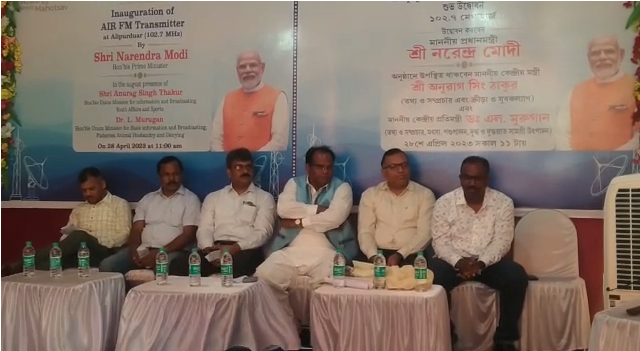 आज पूरे देश में 91 आकाशवाणी एफएम ट्रांसमीटर के साथ अलीपुरद्वार जंक्शन रेलवे अस्पताल संलग्न इलाके में 102.2 मेगाहर्ट्ज एफएम ट्रांसमीटर का उद्घाटन किया गया।
