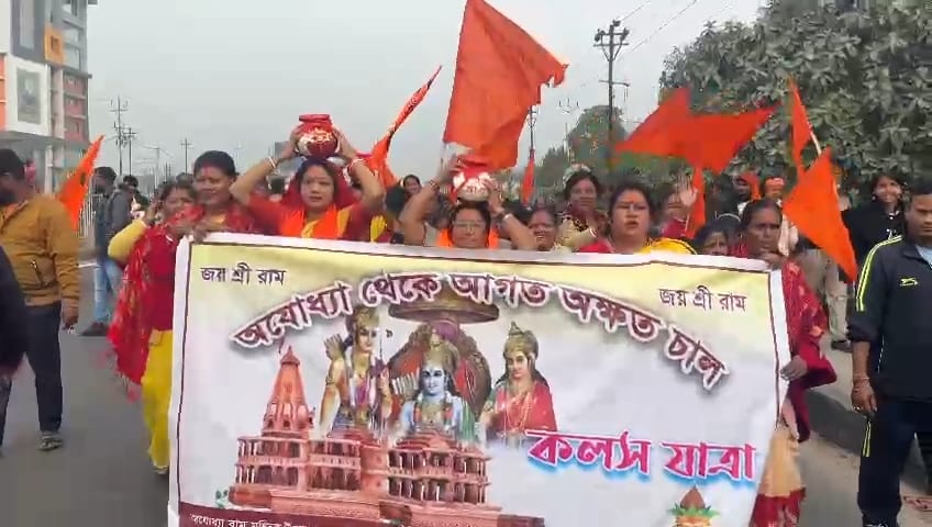 यह कलस यात्रा फूलबाड़ी के बटालियन मोड़ से शुरू हुई और कुछ किलोमीटर की परिक्रमा की। 22 जनवरी को अयोध्या में राम मंदिर का उद्घाटन है। श्रीराम जन्मभूमि तीर्थ ट्रस्ट कमिटी सार्वजनिक निमंत्रण के लिए घर-घर पीले चावल यानी अक्षत भेजकर निमंत्रण दे रही है। आज अक्षत चावल को लेकर कलश यात्रा निकाली गई है। इस यात्रा में सैकड़ों लोग शामिल हुए।