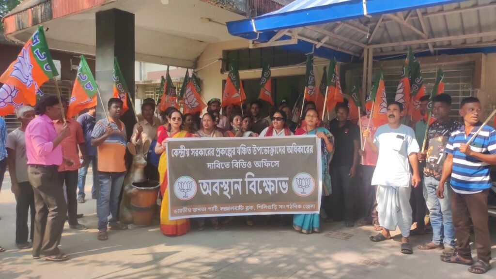 नक्सलबाड़ी,10 नवंबर (नि.सं.)। सिलीगुड़ी भाजपा सांगठनिक जिला और नक्सलबाड़ी ब्लॉक भाजपा ने केंद्र सरकार की योजनाओं से वंचित उपभोक्ताओं के अधिकारों की मांग में नक्सलबाड़ी बीडीओ कार्यालय के सामने विरोध प्रदर्शन किया है। साथ ही उन्होंने राज्य में हो रहे राशन में भ्रष्टाचार की उचित जांच की भी मांग की।