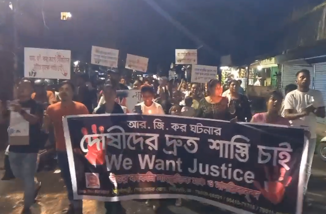 रविवार को यह रैली सिलीगुड़ी के 41 नंबर वार्ड के बोतल कंपनी मोड़ से शुरू होकर शहर के विभिन्न इलाकों की परिक्रमा की। रैली में शामिल सभी लोग हाथों में मोमबत्तियां लेकर दोषियों को सजा देने की मांग की।