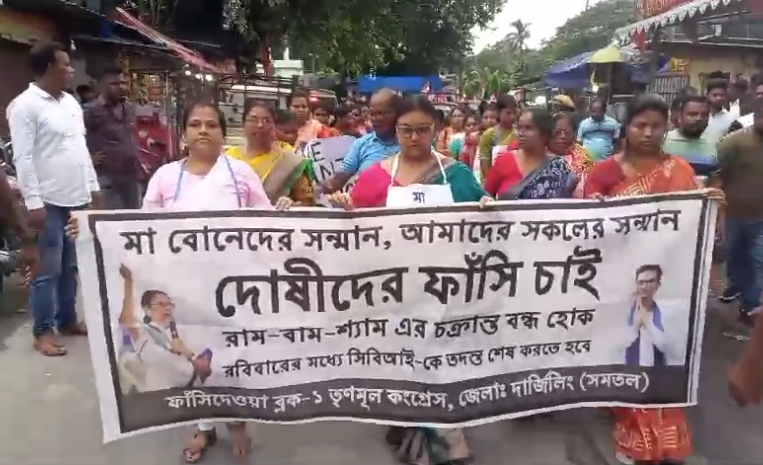 फांसीदेवा,31 अगस्त(नि.सं.)। आरजी कर के मुद्दे पर विभिन्न जगहों पर धरना-प्रदर्शन चल रहा है। आज फांसीदेवा ब्लॉक तृणमूल कांग्रेस ने दोषियों को सजा देने की मांग में एक रैली निकाली है।