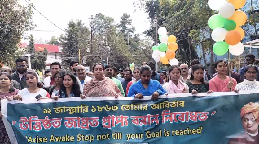 सिलीगुड़ी,12 जनवरी (नि.सं.)। दार्जिलिंग जिला तृणमूल छात्र परिषद ने स्वामी विवेकानंद की163वीं जयंती मनाई है। स्वामी विवेकानंद की जयंती के अवसर पर दार्जिलिंग जिला तृणमूल छात्र परिषद के अध्यक्ष तनय तालुकदार के नेतृत्व में एक शोभायात्रा निकाली गई।
