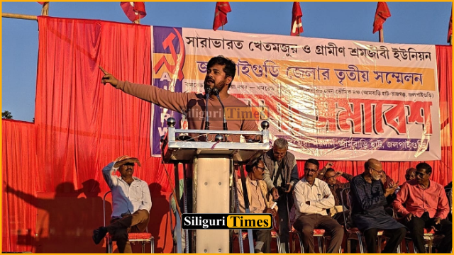 नाराजगंज, 13 दिसंबर(नि.सं)। युवाभारती क्रीड़ांगन में फुटबॉल स्टार लियोनेल मेसी को न देख पाने से हुई अव्यवस्था के मुद्दे को उठाते हुए सार्वजनिक सभा से सायन बंद्योपाध्याय ने राज्य सरकार पर तीखा हमला बोला है। यह जनसभा शनिवार को अखिल भारतीय खेत मजदूर व ग्रामीण श्रमजीवी यूनियन के आह्वान पर जलपाईगुड़ी जिले के तीसरे सम्मेलन के अवसर पर राजगंज ब्लॉक के आमबाड़ी स्थित तारघेरा मैदान में आयोजित की गई।