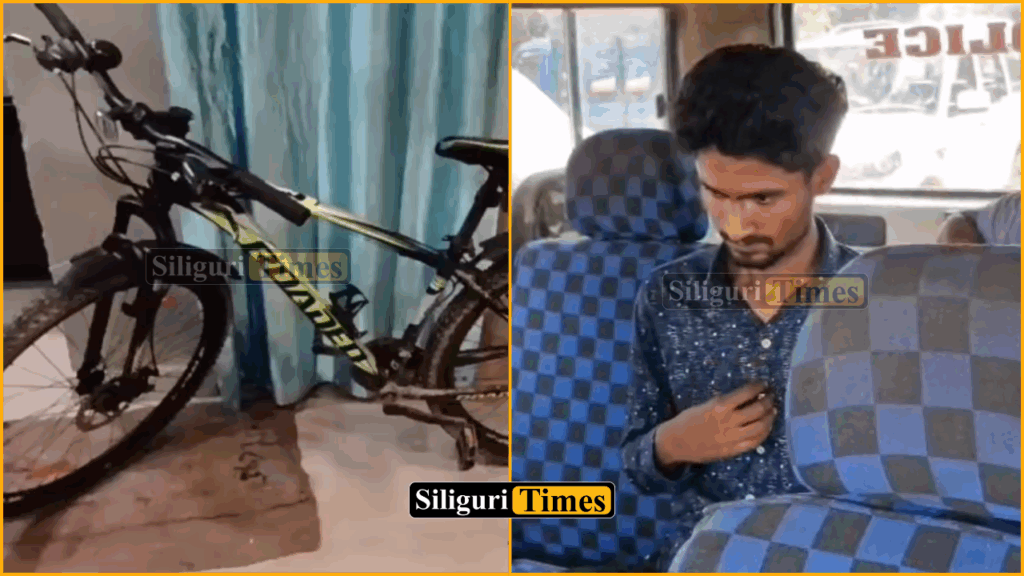 मिली जानकारी के अुनसार माटीगाड़ा थाने के सिसोडांगी इलाके से 18 मार्च को घर के सामने से ही साइकिल चोरी हो गई थी। जिसके बाद 19 मार्च को थाने में एक लिखित शिकायत दर्ज करवाई गई थी। शिकायत मिलने के बाद माटीगाड़ा थाने की सादे पोशाक पुलिस ने मामले की जांच शुरू की और इलाके के कई सीसीटीवी फुटेज की मदद से आखिरकार कल पुलिस ने साइकिल के साथ आरोपी को भी गिरफ्तार कर लिया। आज आरोपी को सिलीगुड़ी अदालत में पेश किया गया पुलिस पूरे मामले की जांच कर रही है।