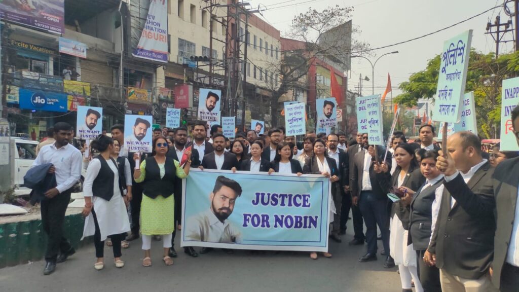सिलीगुड़ी,15 मार्च (नि.सं.)। सिलीगुड़ी के वकील नवीन सरकार की रहस्यमयी मौत की घटना के पांच महीने हो चुके है। जिस वजह से रहस्यमयी मौत की सच्चाई सामने लाने की मांग पर आज सिलीगुड़ी बार एसोसिएशन की तरफ से सिलीगुड़ी में एक रैली निकाली गई। इस दौरान बार एसोसिएशन के सदस्यों ने नवीन सरकार मौत मामले की जांच में लापरवाही करने वाले पुलिस ऑफिसर पर कारवाई और सच्चाई सामने लाकर दोषी को कड़ी सजा देने की मांग में आवाज बुलंद की।