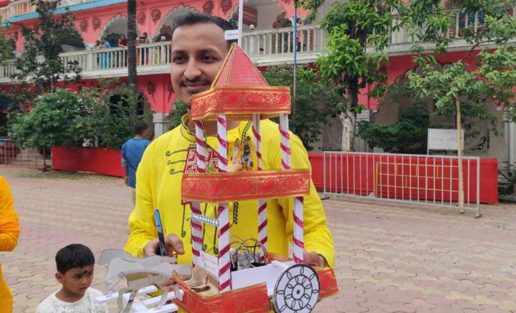 जी हां आज ऐसा ही एक रथ सिलीगुड़ी के सुकांतनगर के निवासी अभिजीत साहा रथयात्रा के दिन इस्कॉन मंदिर लेकर आए। अभिजीत साहा पेशे से शिक्षक हैं। उन्होंने डिजिटल रथ बनाया है। जिसने आम लोगों के साथ ही बच्चों का ध्यान अपनी और खींचा।
