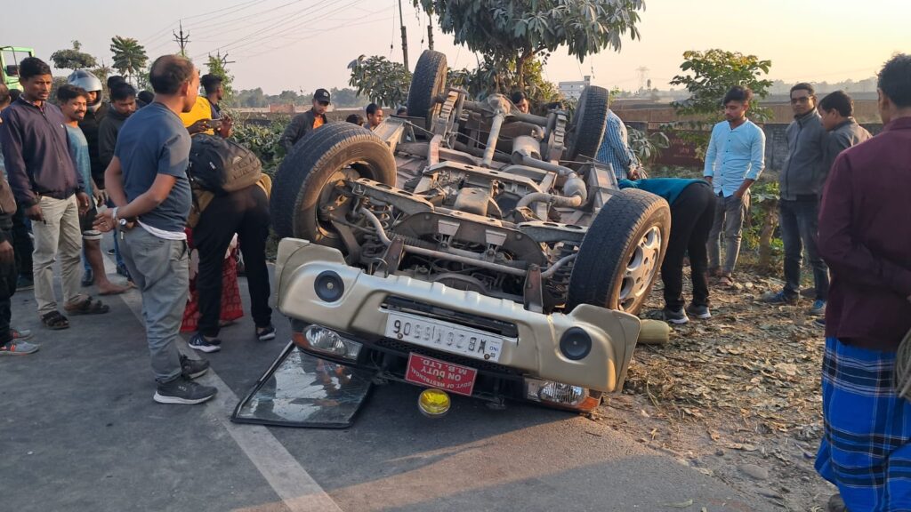 स्थानीय सूत्रों के अनुसार एक चारपहिया वाहन जलपाईगुड़ी से सिलीगुड़ी की ओर आ रहा था। तभी बंधुनगर संलग्न इलाके में एक वाहन के साथ चार पहिया वाहन की टक्कर हो गई। जिससे चार पहिया वाहन सड़क किनारे पलट गया।