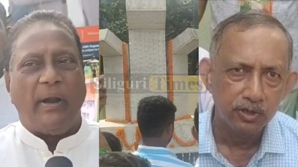 उपेक्षित शहीद वेदी का पुनर्निर्माण मेयर गौतम देव ने कराया। हर साल की तरह आज सुबह कांग्रेस नेता शंकर मालाकार शहीद वेदी पर श्रद्धांजलि देने पहुंचे तो वहां गौतम देव के नाम की फलक देखकर वे नाराज हो गए।
