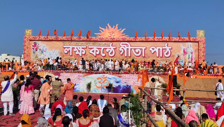 सिलीगुड़ी,15 दिसंबर (नि.सं.)।सिलीगुड़ी के कावाखाली मैदान में लाखों कंठों में गीता पाठ का आयोजन किया गया है। बताया गया है कि सिलीगुड़ी के लाखों कंठों में गीता पाठ कार्यक्रम में पूरे भारत से लगभग एक हजार 100 प्रमुख संत शामिल हुए है।