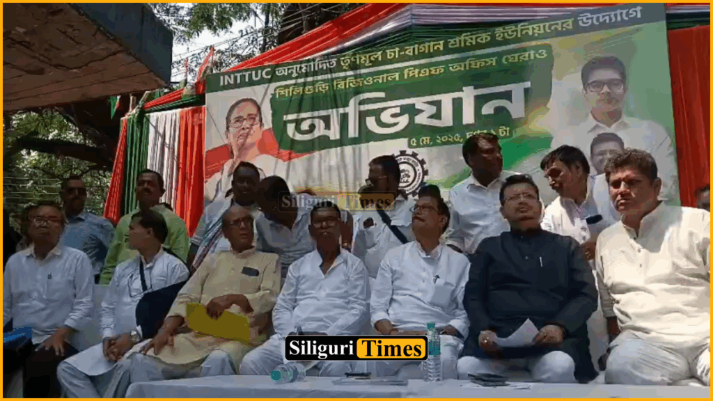 सिलीगुड़ी,5 मई (नि.सं.)।चाय बागान श्रमिकों के प्रोविडेंट फंड से जुड़े मुद्दों को ध्यान में रखते हुए तृणमूल कांग्रेस के श्रमिक संगठन आईएनटीटीयूसी ने सोमवार को सिलीगुड़ी के प्रधाननगर इलाके में क्षेत्रीय पीएफ कार्यालय का घेराव किया। संगठन के सदस्यों ने पीएफ कार्यालय के सामने विरोध प्रतिवाद सभा भी किया। इस दौरान राज्य के कानून एवं श्रम मंत्री मलय घटक, राज्यसभा सांसद एवं आईएनटीटीयूसी के राज्य अध्यक्ष रीताब्रत बनर्जी, दार्जिलिंग जिला आईएनटीटीयूसी के अध्यक्ष निर्जल दे समेत अन्य नेता उपस्थित थे।