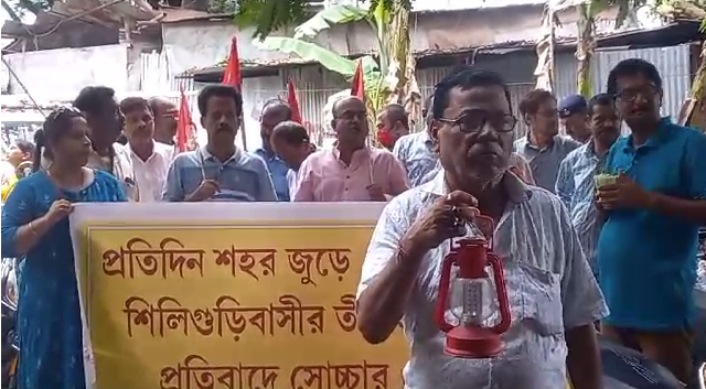 सिलीगुड़ी,15 जून (नि.सं.)। सिलीगुड़ी में लोड शेडिंग के विरोध में सीपीआईएम सिलीगुड़ी 2 नंबर एरिया कमिटी ने लालटेन लेकर विरोध रैली निकाली है। आज सिलीगुड़ी के हिलकार्ट रोड स्थित सीपीएम पार्टी कार्यालय अनिल विश्वास भवन के सामने से माकपा ने लालटेन लेकर उक्त रैली निकाली। इसके बाद उन्होंने हिलकार्ट रोड स्थित बिजली वितरण विभाग के सामने विरोध प्रदर्शन किया।