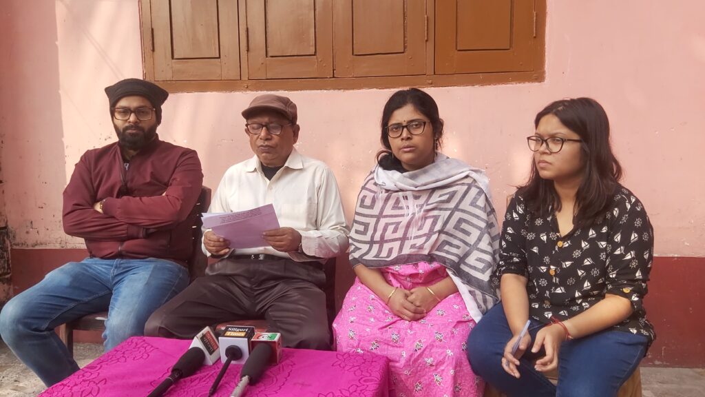 सिलीगुड़ी,8 दिसंबर (नि.सं.)। सिलीगुड़ी संलग्न फाराबाड़ी स्पेशल कैडर प्राथमिक विद्यालय से एक स्कूल शिक्षक का फंदे से लटकता हुआ शव बरामद हुए पांच दिन बीत चुके हैं, लेकिन अभी तक घटना की जांच शुरू नहीं हुई है। ऐसे आरोप लगाते हुए आज मृत शिक्षक के परिजनों ने एक पत्रकारों सम्मेलन की। ज्ञात हो कि 3 दिसंबर को स्कूल से शिक्षक सौरभ कुमार राय का फंदे से लटकता शव बरामद किया गया था।