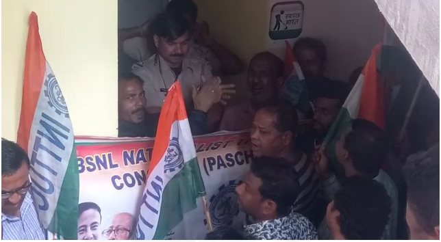 कार्यालय के अंदर तृणमूल कर्मचारी संगठन के बैनर लेकर बीएसएनएल के अस्थायी कर्मचारियों ने अपनी विभिन्न शिकायतों को लेकर जमकर नारे लगाये। अस्थायी कर्मचारियों का आरोप है कि जो 2 टेंडर पास किए गए हैं, उससे श्रमिकों के हितों को नुकसान होगा और कई श्रमिकों की छंटनी होगी। इस लिये श्रमिकों के हित में इस टेंडर को तत्काल रद्द किया जाना चाहिए। यदि उनकी सभी मांगें तुरंत नहीं मानी गई तो आने वाले दिनों में बृहद आंदोलन में शामिल होंगे।