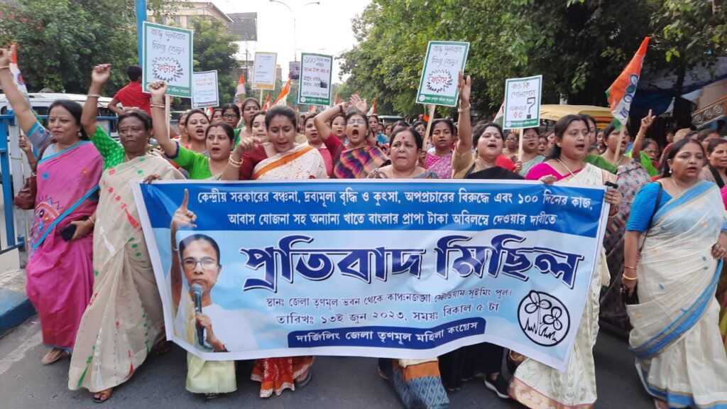 सिलीगुड़ी, 13 जून (नि.सं.)। दार्जिलिंग जिला महिला तृणमूल कांग्रेस ने सिलीगुड़ी में केंद्र के खिलाफ आर्थिक वंचना का आरोप लगाते हुए विरोध रैली निकाली।
