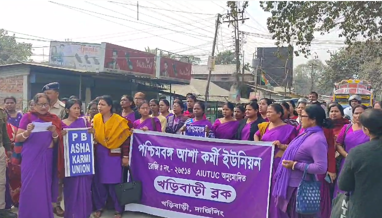 खोरीबाड़ी,13 फरवरी (नि.सं.)। वेतन वृद्धि की मांग में आशा कर्मियों ने खोरीबाड़ी-सिलीगुड़ी राजकीय सड़क अवरुद्ध कर विरोध प्रदर्शन किया है। पश्चिमबंग आशाकर्मी यूनियन की ओर से आज पूरे राज्य की तरह खोरीबाड़ी में भी आशा कर्मी यूनियन विरोध प्रदर्शन में शामिल हुई है।
