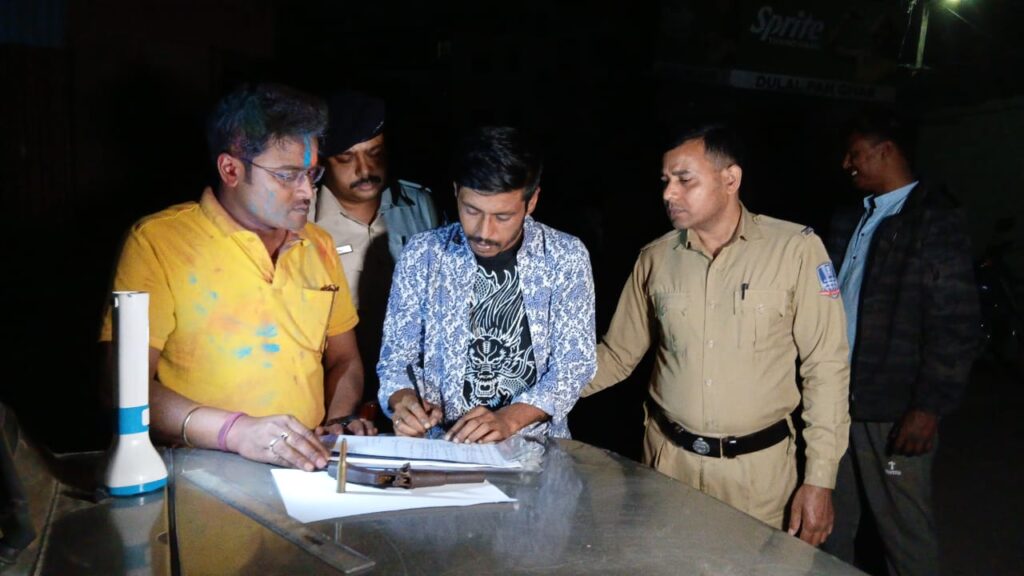 पुलिस सूत्रों के अनुसार बीते कल देर रात पुलिस को गुप्त सूत्रों से खबर मिली कि एसएनटी इलाके में एक युवक हथियार लेकर घूम रहा है। इसके बाद प्रधान नगर थाना की सफेद पोशाक पुलिस ने अभियान चलाते हुए मुकेश विश्वकर्मा को संदेह के आधार पर पकड़ कर उसकी तलाशी ली। इस दौरान उसके कमर से देशी कट्टा और एक जिंदा कारतूस बरामद हुआ। प्राथमिक पूछताछ में पुलिस को पता चला है कि आरोपी ने झारखंड से हथियार मंगा कर बीते कल रात एसएनटी इलाके में बिक्री करने वाला था। लेकिन इससे पहले ही उसे गिरफ्तार कर लिया गया। आज आरोपी को सिलीगुड़ी अदालत में पेश कर रिमांड की मांग गई है। पुलिस सूत्रों के अनुसार आरोपी मुकेश विश्वकर्मा इससे पहले भी कई बार आपराधिक मामलो में गिरफ्तार हो चुका है। पुलिस पूरे मामले की जांच कर रही है।